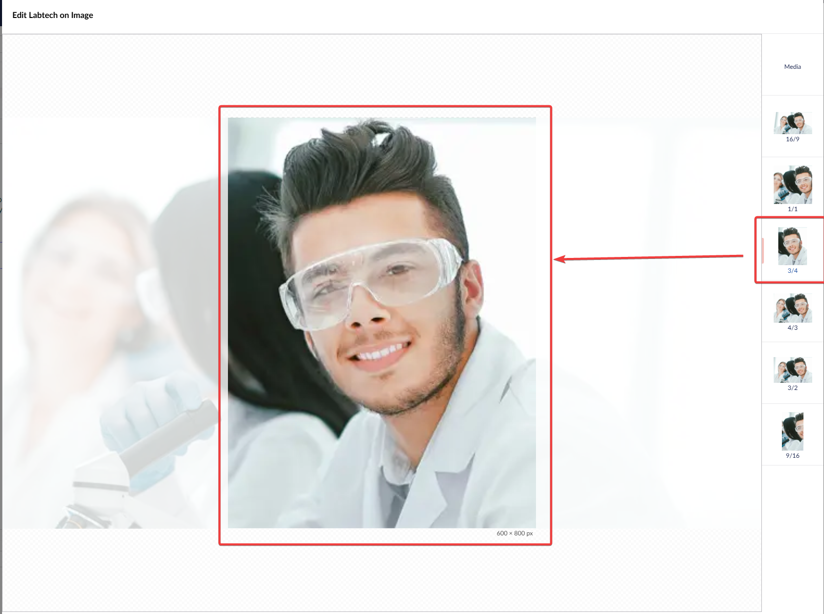 Open the image that you selected, on the right you can see available crop options, select the on you have selected in the image block properties.