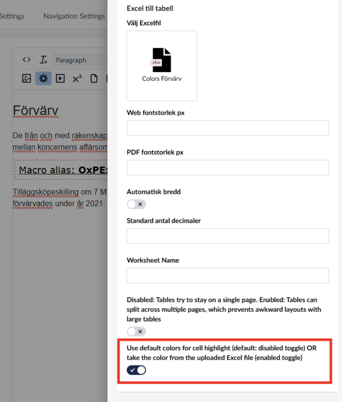 Then, when you upload the Excel file in Macros, you need to enable the toggle below.