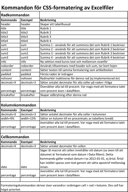 - Formatering bör i första hand göras i Format-bladet. Data-bladet ska vara helt oformaterat.