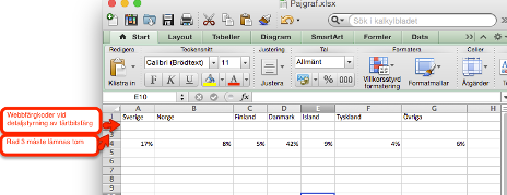 Lämna alltid rad 2 och 3 tomma (om man inte vill detaljstyra en tårtbitsfärg, lägg då in en webbfärgkod på rad 2)