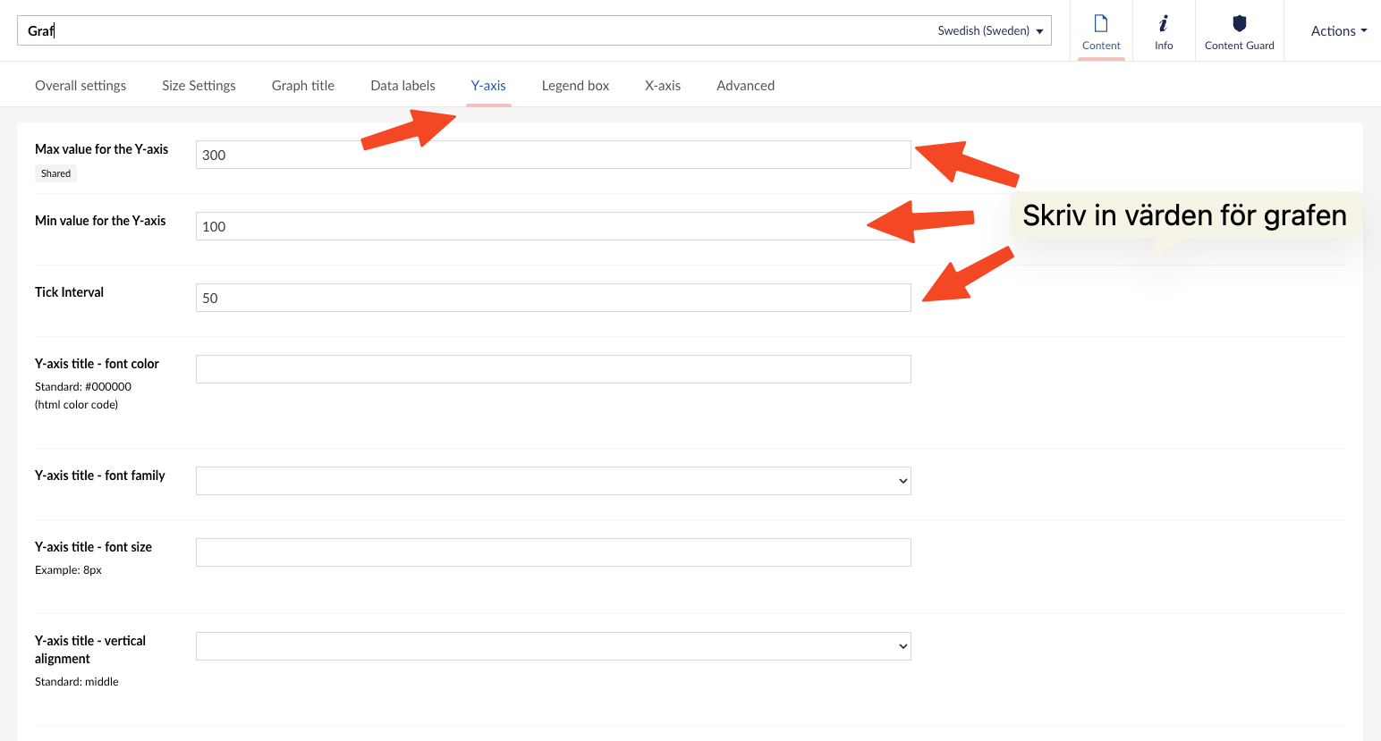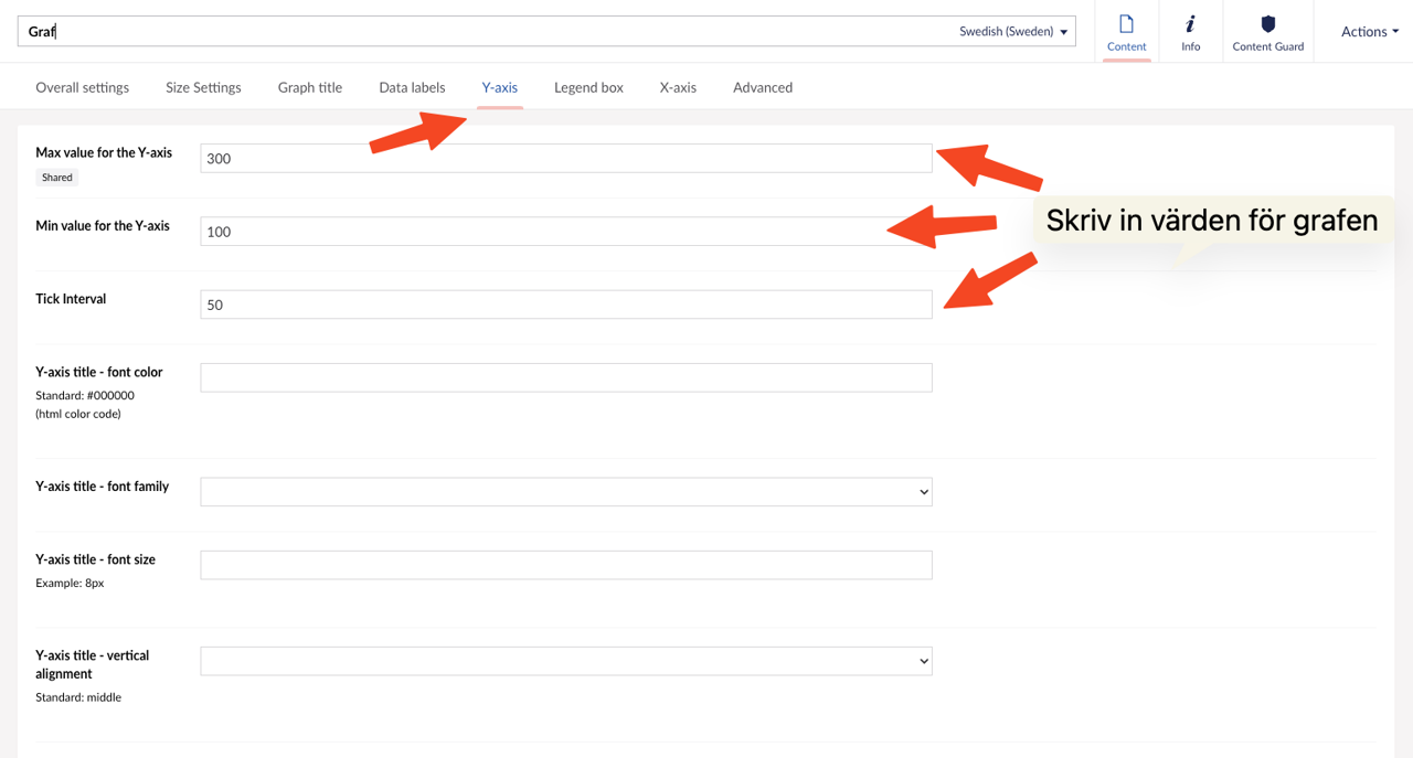 Ändra max/minimivärde och tick intervall på grafer