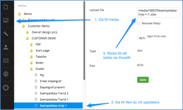 Navigera till filen som du vill uppdatera (dvs den Excelfil som är kopplad till din graf). Du expanderar en mapp genom att klicka på den blå trekanten bredvid mappen. Markera den filmapp som ska uppdateras.