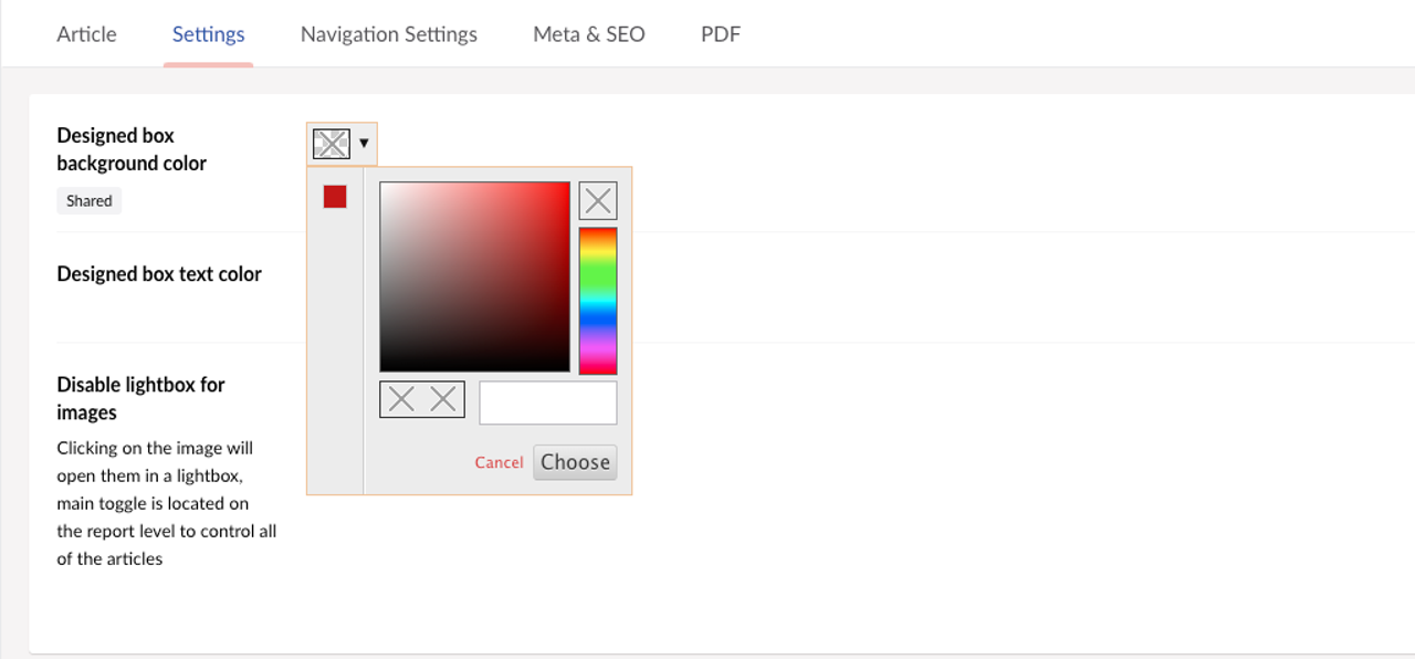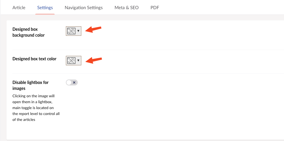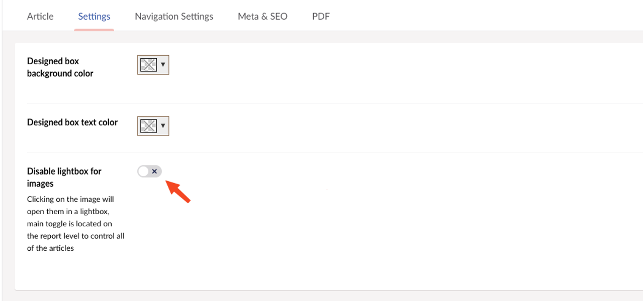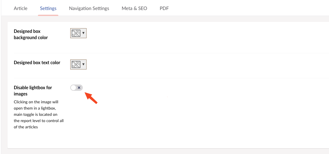 Standardmässigt är Lightbox-funktionen aktiverad, men du kan stänga av den genom att klicka på "disable Lightbox for images".