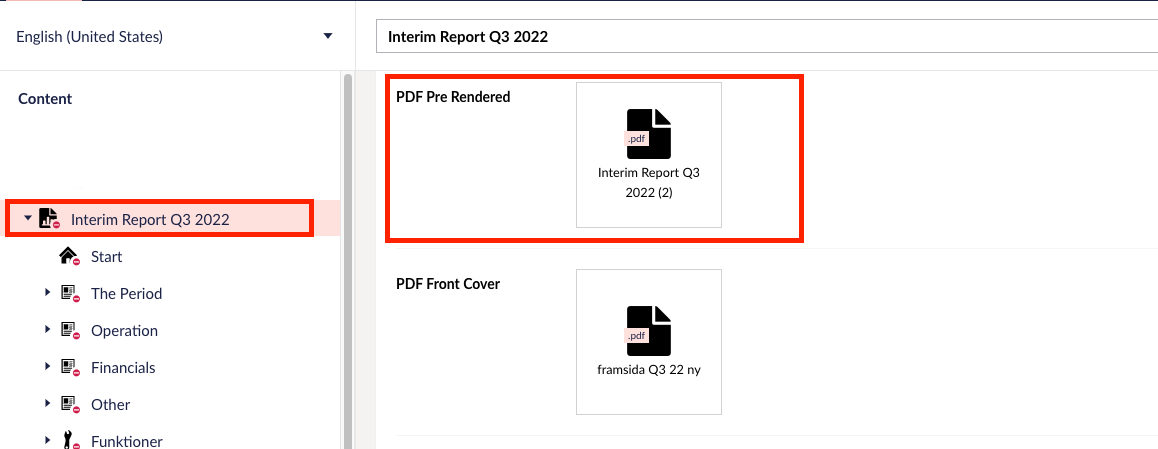 3. Här väljer ni den svenska PDF'en och den engelska som färdiga rapporter.